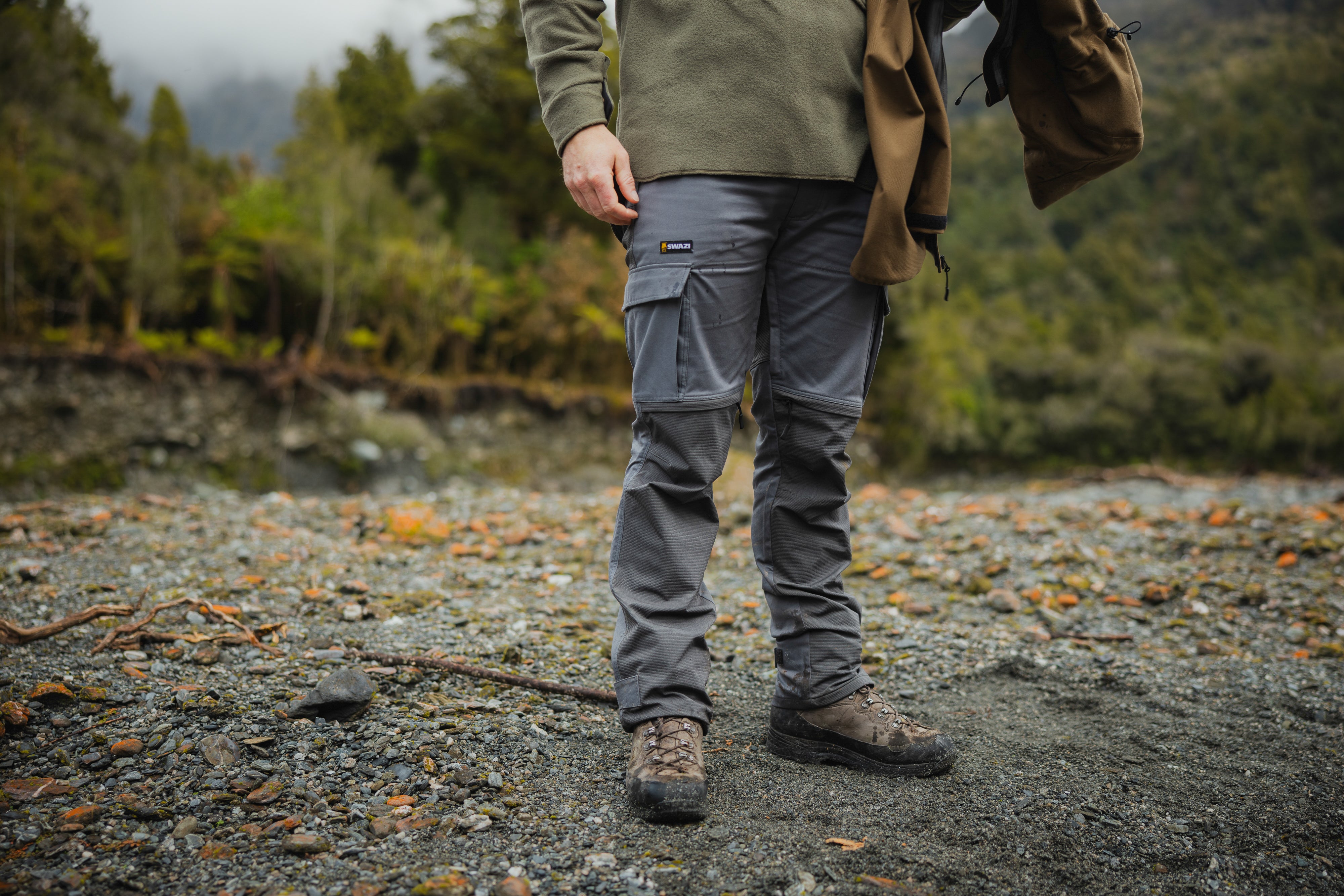 The large zipped chest pocket takes your phone and more. It’s also handy for muesli bars, predator calls, braid scissors, etc. And it’s longer aft to cover your ass when you bend for spent brass or to take the backstraps off a fat hind.
